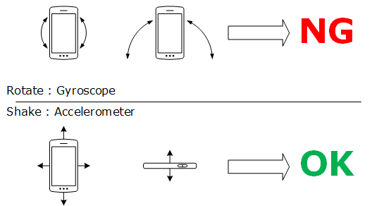 以上のような推測が出来たので、試しに自分のスマホを手で振り回して ”加速度センサ” と ”ジャイロスコープ” のそれぞれを動かした際に
