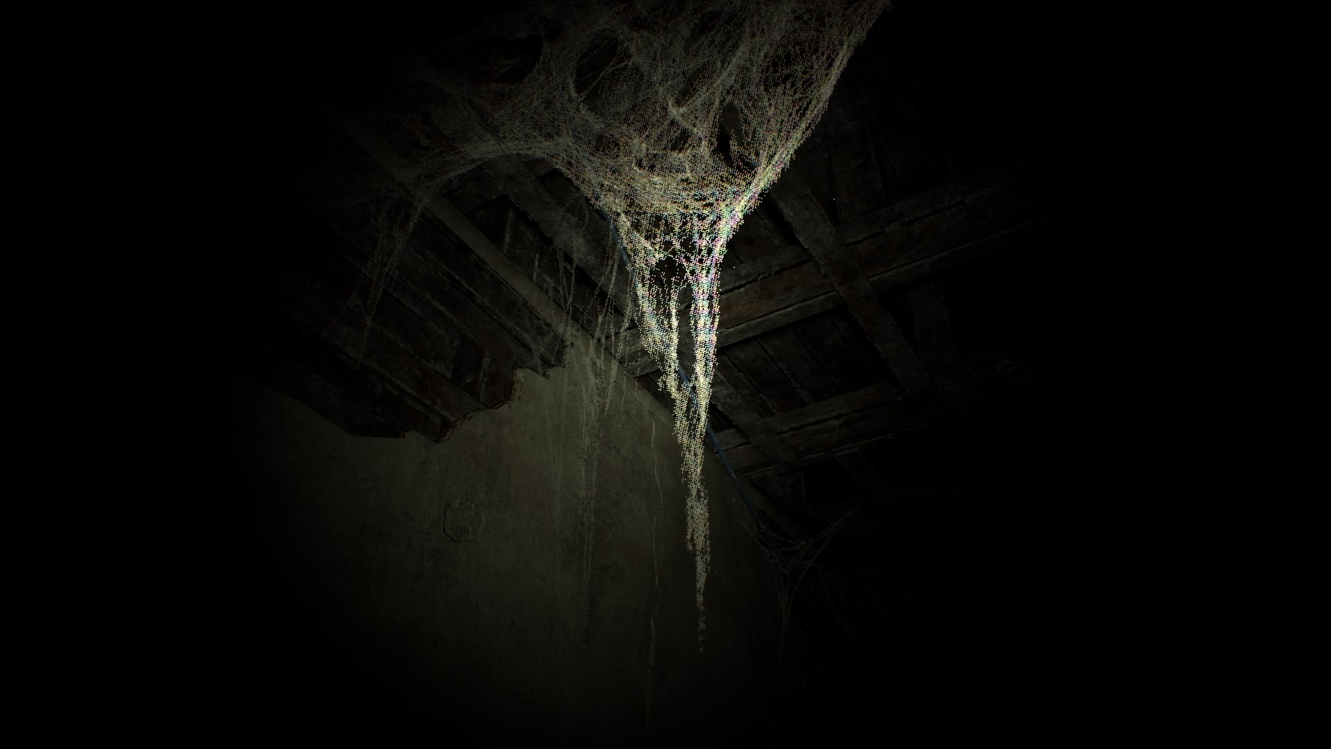 クモの巣をリアルに再現する専用シェーダーでも書くか、サイコブレイクみたいな古典的な表現にした方が ”それらしい” ですよ。(以下、サイコブレイク)